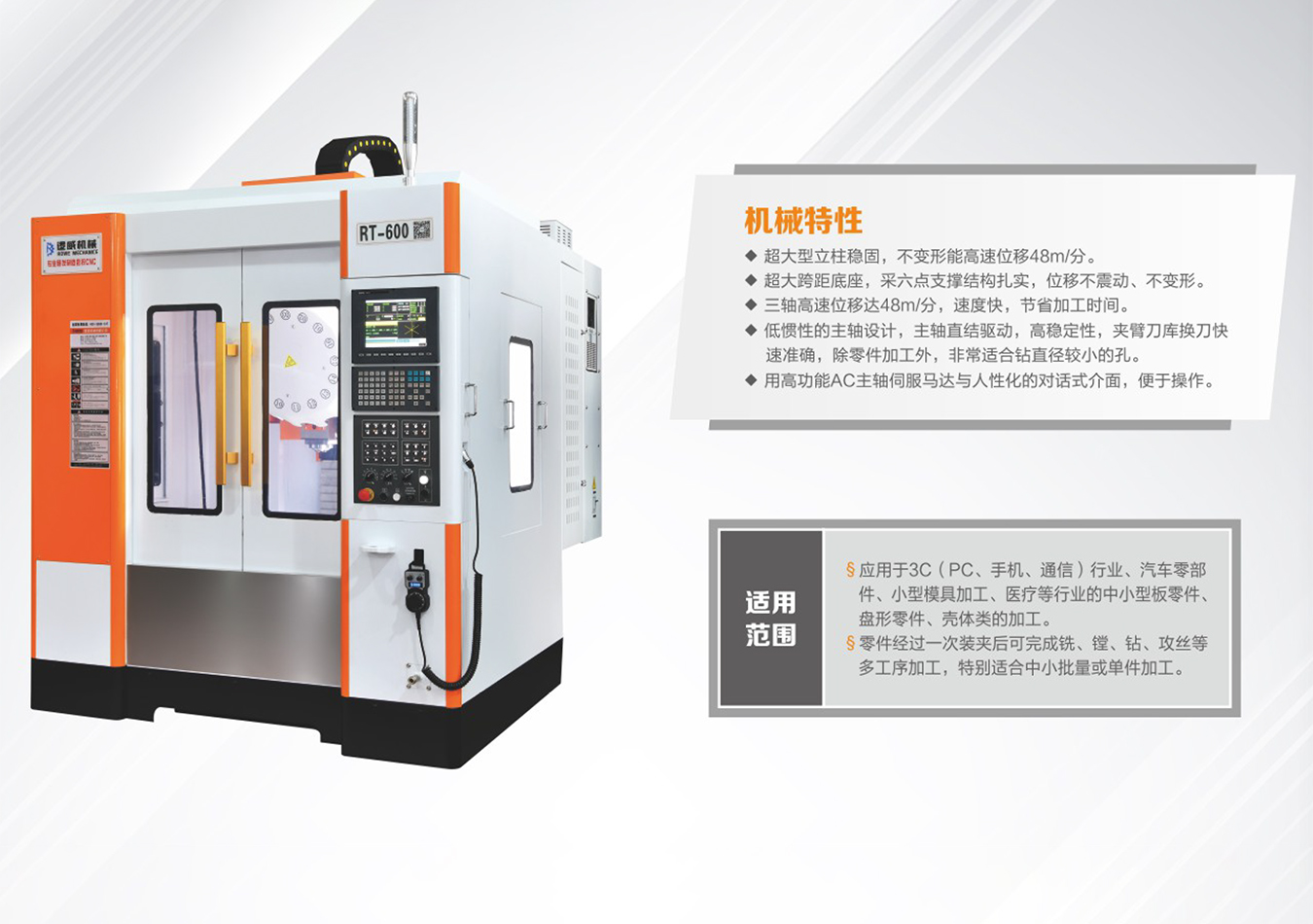 邏威鉆攻機(jī)-T6底座寬實(shí)平穩(wěn),箱型立柱,鞍座加長加寬,結(jié)構(gòu)堅(jiān)實(shí),快速位移搭配高速換刀機(jī)掏更能體現(xiàn)加工之效率;